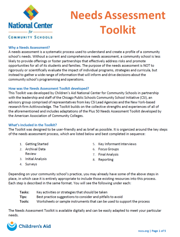 The toolkit is designed to support community schools in making data-driven decisions by mapping existing resources and pinpointing gaps that need to be addressed. It guides schools through a structured assessment process to inform planning, set priorities, and design strategies that improve outcomes.